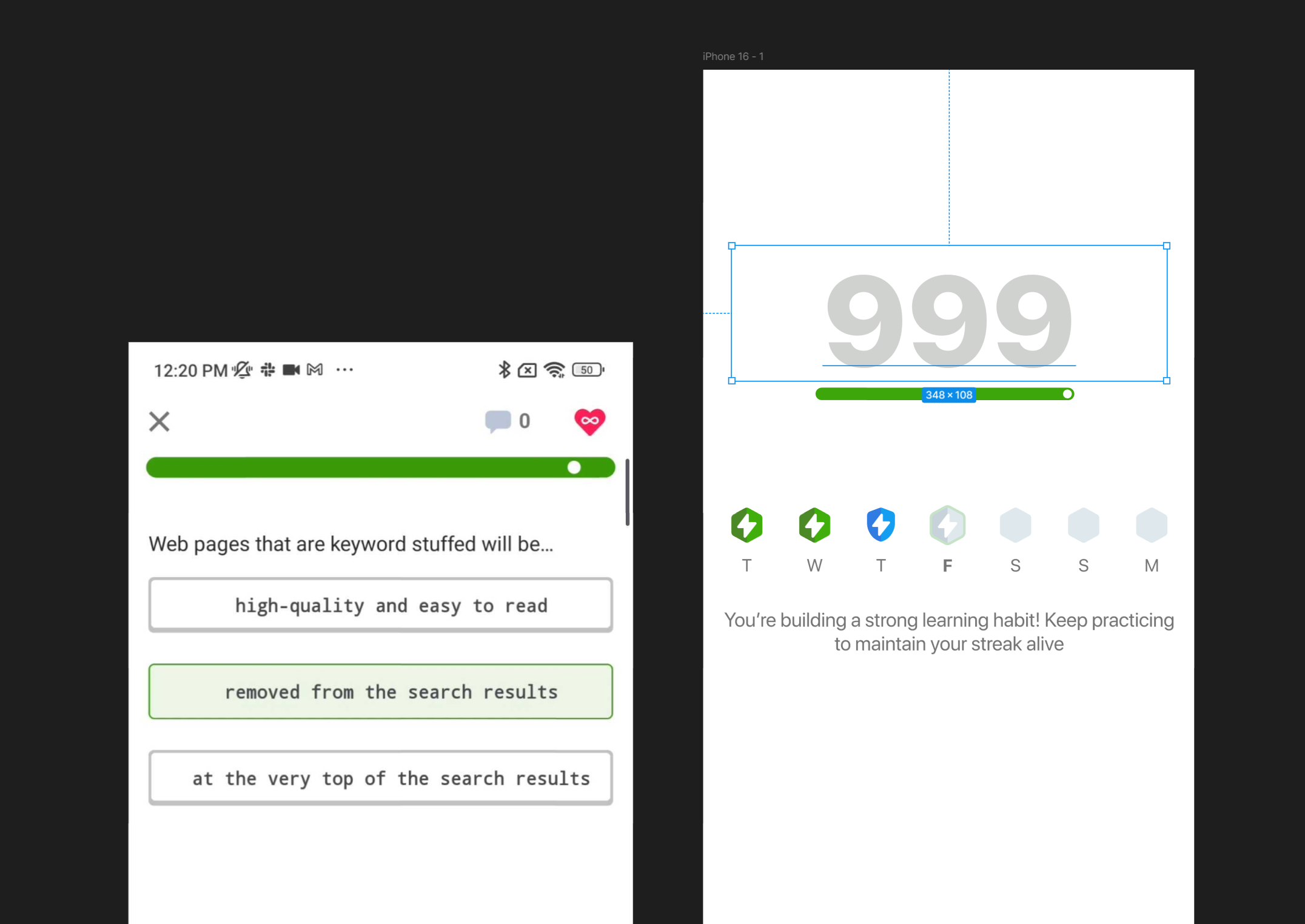 I knew there was a lot to gain in terms of user retention. There’s nothing like a good pat on the back after you achieve your daily goal. The tricky part was not to overdo it. We had limited resources, and anything beyond a plug-and-play Lottie implementation would likely be deprioritized.
